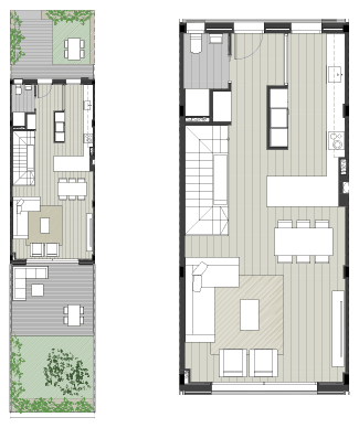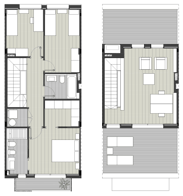 El complejo residencial se compone de 11 viviendas adosadas de 4 dormitorios, distribuidos en 4 plantas con amplias terrazas.